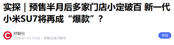 【CNMO科技音讯】1月23日,CNMO防护到,据《财联社》报谈,昨日其探究了多家小米汽车直营店后,经和随意估算,自1月7日开启小定后,新一代小米SU7已累计收货近10万订单。